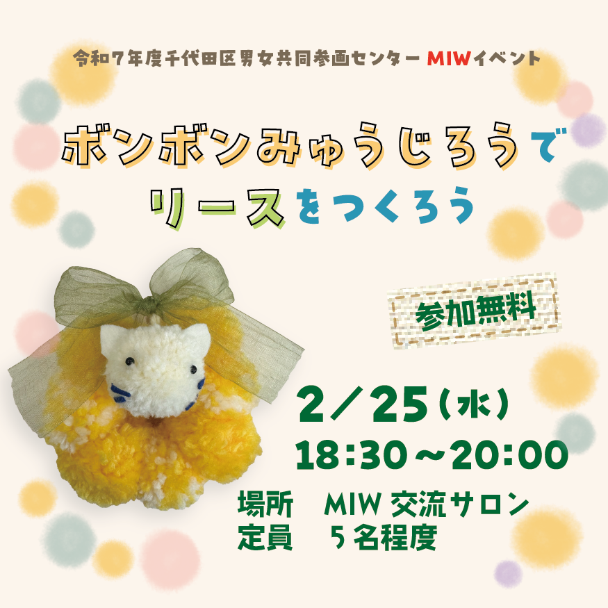 【参加募集中】ワークショップ「ボンボンみゅうじろうでミモザ風リースをつくろう」