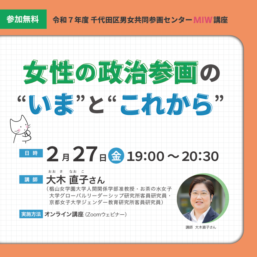 【参加募集中】MIW講座「女性の政治参画の“いま”と“これから”」