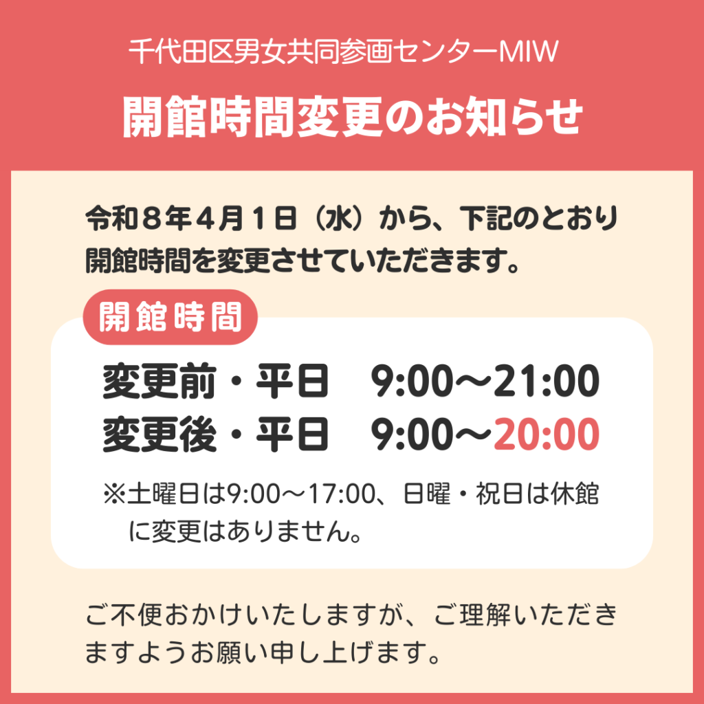 【令和7年4月~】MIW相談室の相談時間が変更になりました