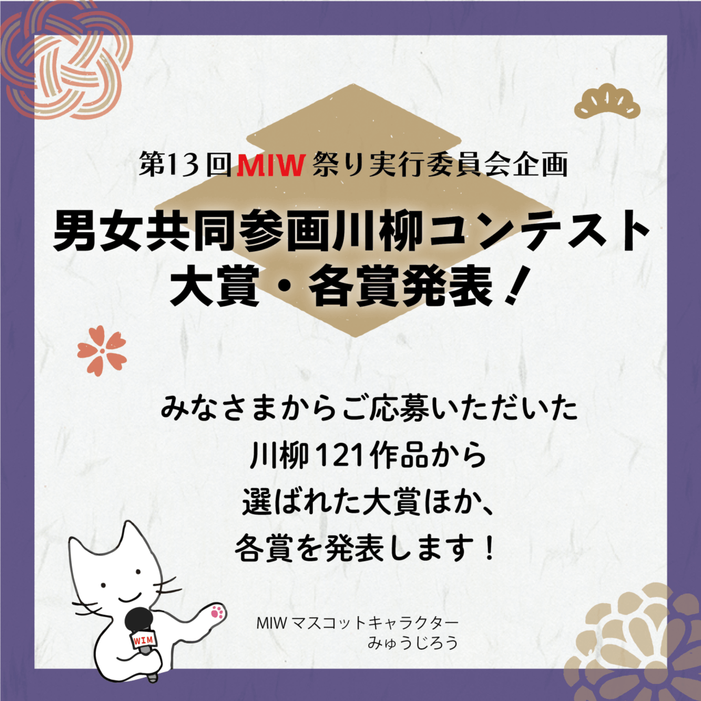 みなさんからお寄せいただいた川柳作品は開催期間中、MIW祭り会場で展示します。